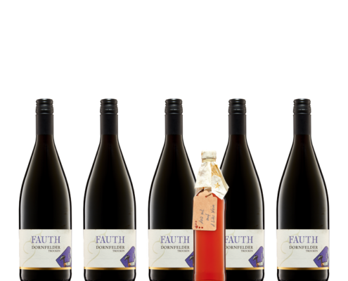 5 Flaschen unseres Dornfelder Rotweins trocken Nr 1, plus eine Flasche von unserem hausgemachten Glühweinsud. … zum Weinpaket